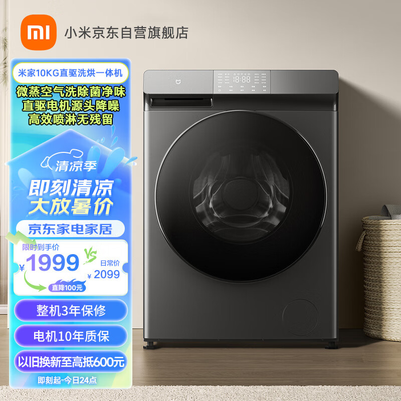 米家小米 滚筒洗衣机全自动 10kg洗烘一体 微蒸空气洗除菌喷淋 小爱语音直驱电机节能 XHQG100MJ202价格:1999.00元!