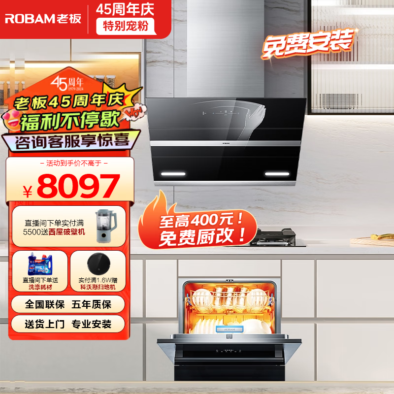 老板(Robam)21风量抽油烟机灶具12套家用灶下嵌入式洗碗机三件套27A3H+57B2DT+B60D价格:8097.00元!