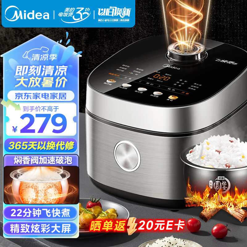 美的(Midea)电饭煲电饭锅4L银钻圆灶釜飞快系列炫彩触控屏22分钟快速饭17大功能家用智能电饭煲(3-8人)RC475价格:279.00元!