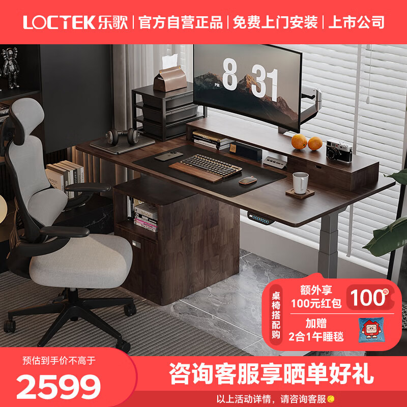 乐歌电动升降桌电脑桌站立办公学习桌写字桌E5-N/1.6m灰胡桃木色套装价格:2869.00元!