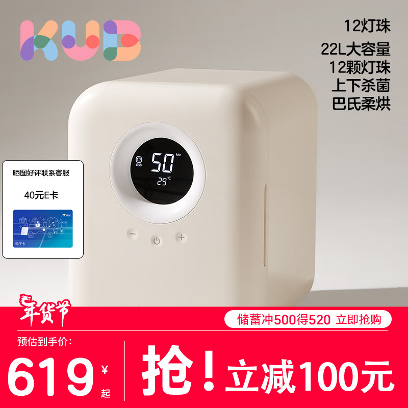 可优比(KUB)奶瓶消毒器婴儿奶瓶烘干杀菌12颗无泵灯珠22L保洁柜-里瑟米价格:709.00元!