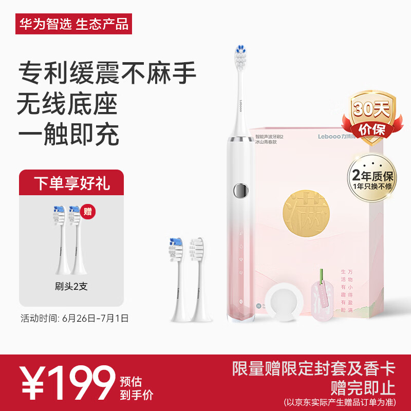 华为智选力博得电动牙刷 智能声波牙刷2 冰山青春款 送男友送女友礼物 珊瑚粉(支持鸿蒙智联)价格:199.00元!