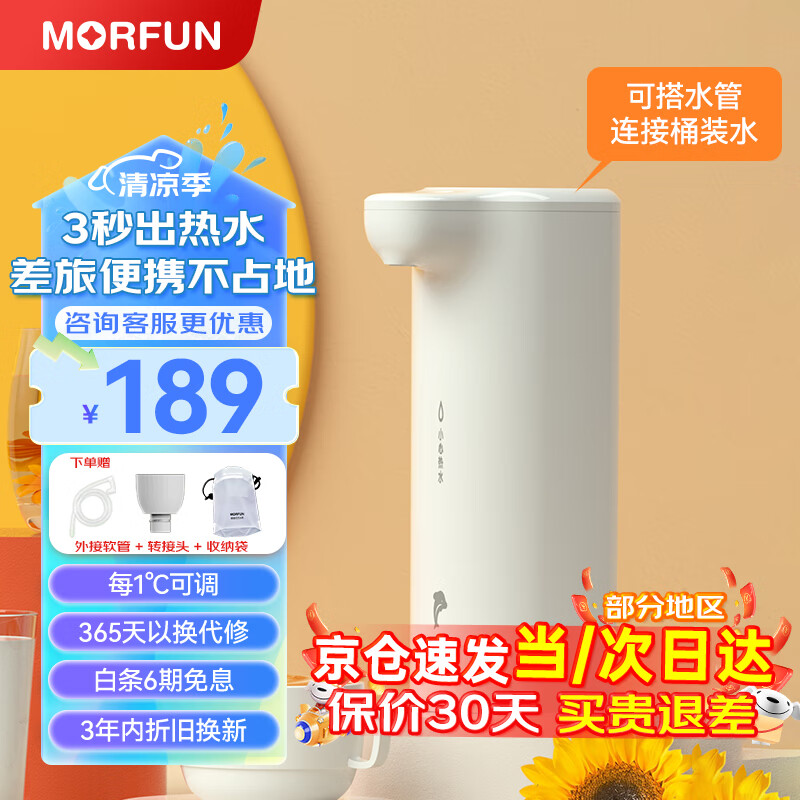 魔凡(MORFUN)即热式饮水机家用茶吧迷你便携式旅行台式小型口袋速热水机冲奶机泡茶机烧水壶一体机 【珍珠白】 即热型价格:249.00元!