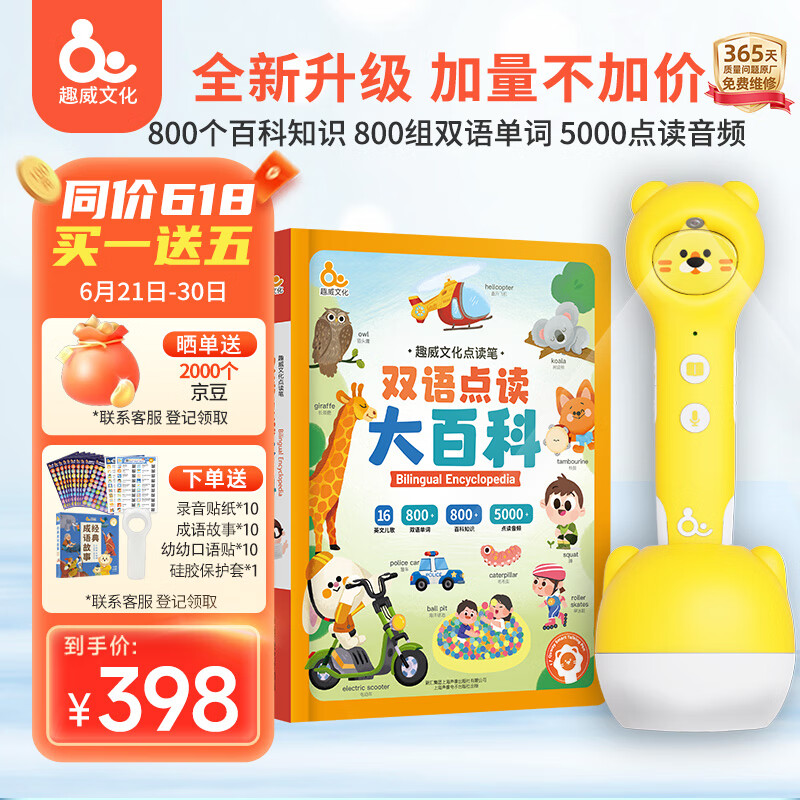 趣威文化S1点读笔双语大百科科宝宝启蒙认知幼儿早教机儿童玩具点读书价格:619.00元!
