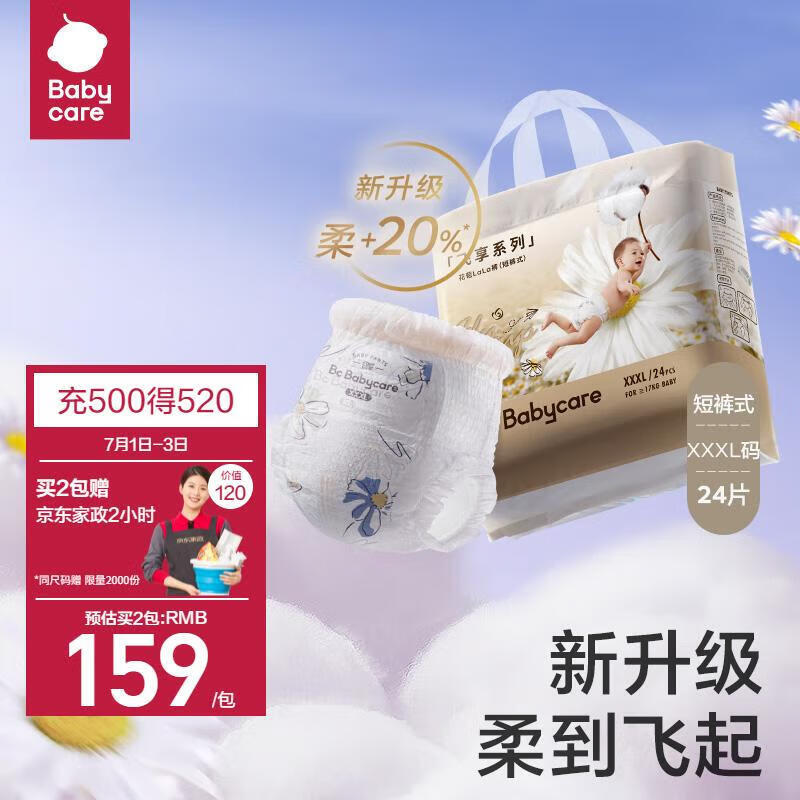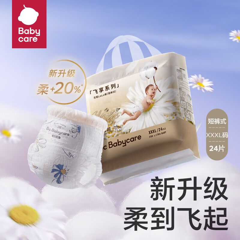 babycare拉拉裤飞享花苞裤bbc尿不湿XXXL24片(>17kg)不支持尺码随心换价格:209.00元!