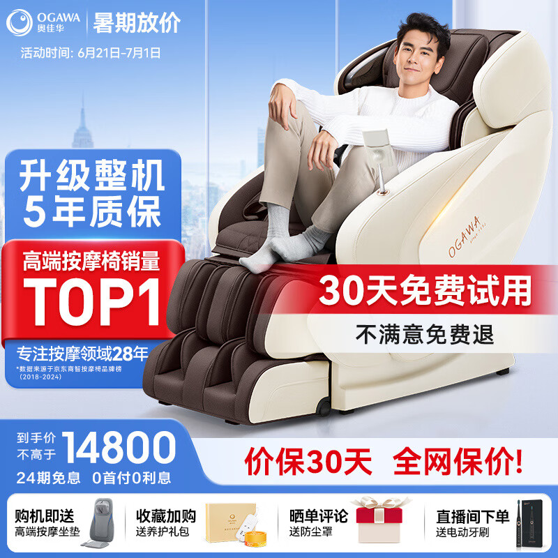 奥佳华(OGAWA)家用按摩椅2024十太空舱全身智能电动按摩沙发零重力3D机芯中医养生老人头等舱7808知芯大师 7808S+原木棕价格:19800.00元!