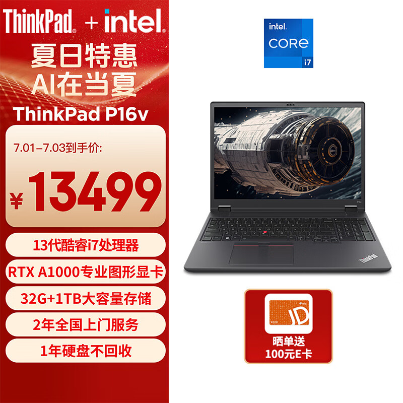 ThinkPad P16v 联想16英寸高性能设计师工作站 13代酷睿i7-13700H 32G 1TB RTXA1000 商务办公本价格:13499.00元!