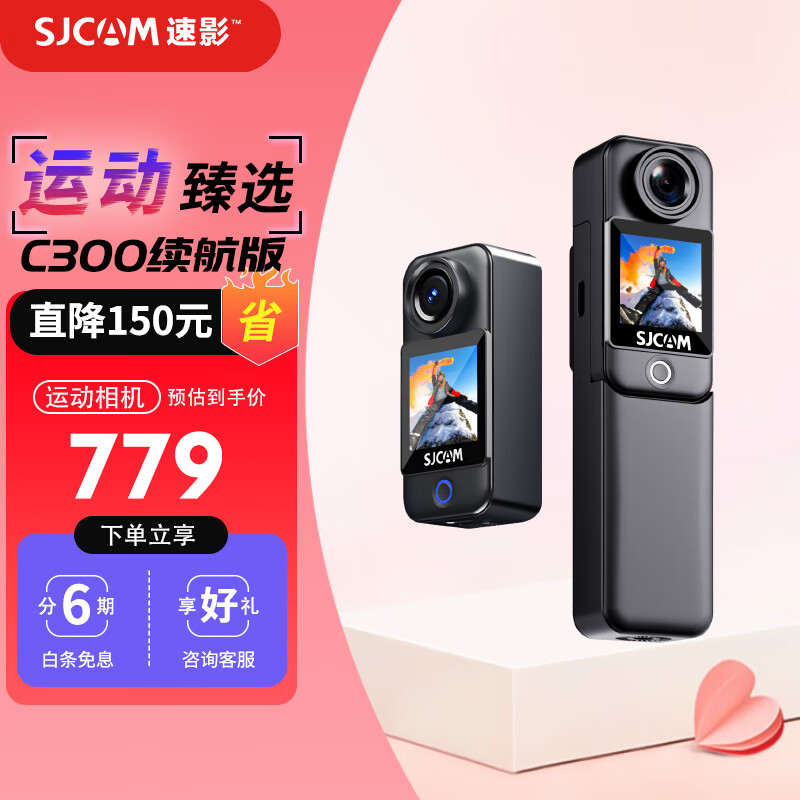 SJCAM速影 C300续航版360运动相机摩托车行车记录仪拇指相机防抖防水黑色32G+配件包价格:779.00元!