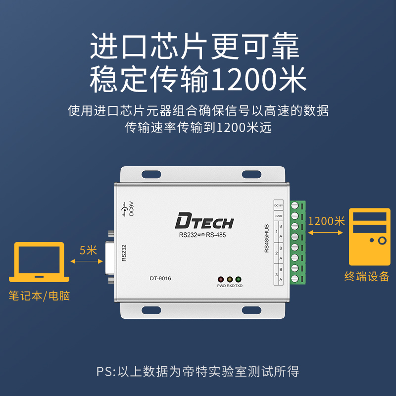 帝特 工业级有源RS232转RS485转换器防雷防浪涌3组485集线器 DT-9016价格:128.00元!