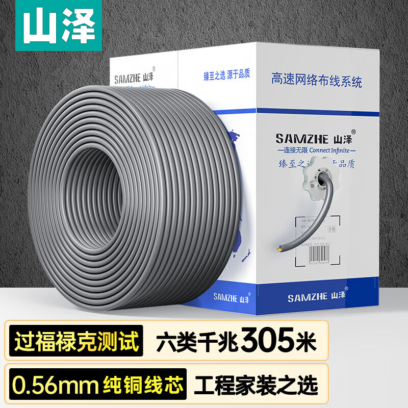 山泽(SAMZHE) 六类网线【工程版】CAT6类千兆网络箱线 工程家装监控布线非屏蔽305米 SZ-H6305价格:799.00元!