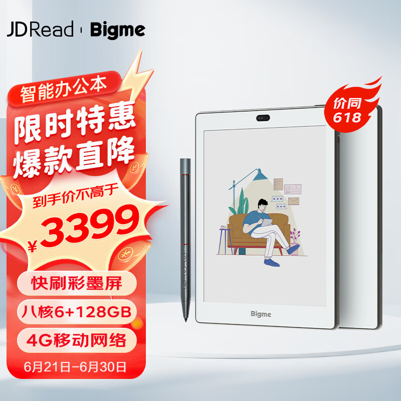 JDRead BIGME S6 Color+ 7.8英寸彩色墨水屏智能办公本电纸书手写本电子书阅读器笔记本双摄像头价格:3699.00元!