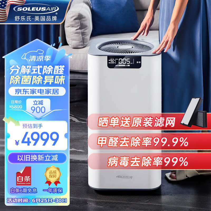 SOLEUSAIR舒乐氏空气净化器宠物除菌猫毛家用吸附除甲醛除花粉过敏原异味除甲醛分解除雾霾 等离子除菌A02价格:4999.00元!