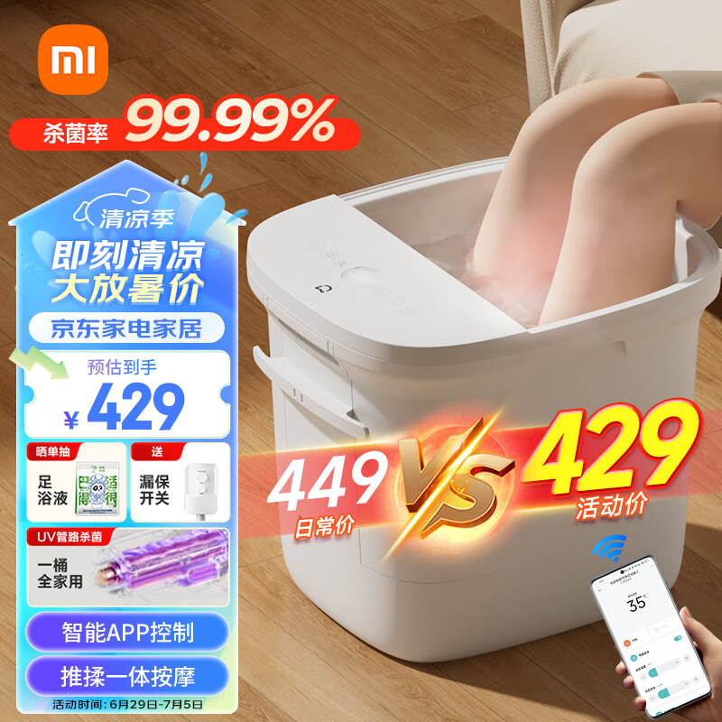 米家小米泡脚桶全自动恒温加热按摩足浴盆智能杀菌洗脚桶过小腿 礼物推荐价格:429.00元!