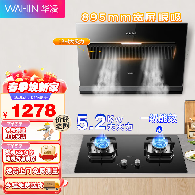 华凌 美的出品 抽油烟机 烟灶套装 18立方米大吸力 家用HJ03烟灶套装 5.2kW灶具天然气灶 HJ03+HQ8天价格:1278.00元!