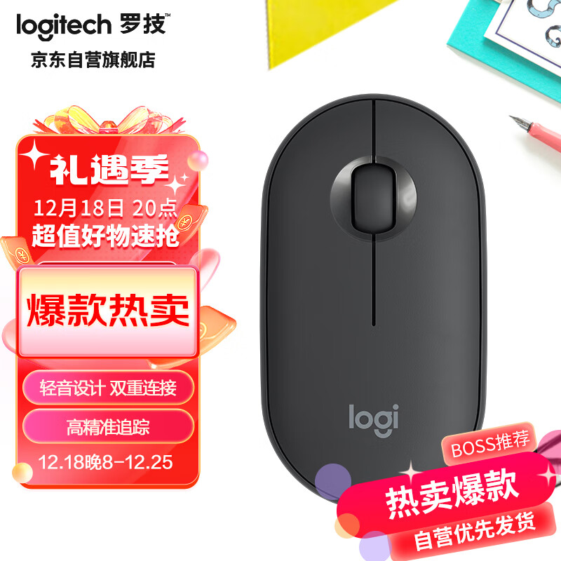 罗技(Logitech)LOGITECH PEBBLE鼠标 无线蓝牙鼠标 办公静音鼠标 女性鼠标对称鼠标 鹅卵石造型 石墨黑价格:95.00元!