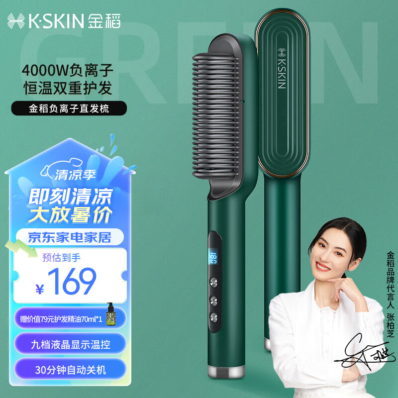 金稻直发梳负离子夹板卷发棒内扣直板夹造型梳子 4000万负离子护发 生日礼物女 KD380K绿色价格:249.00元!