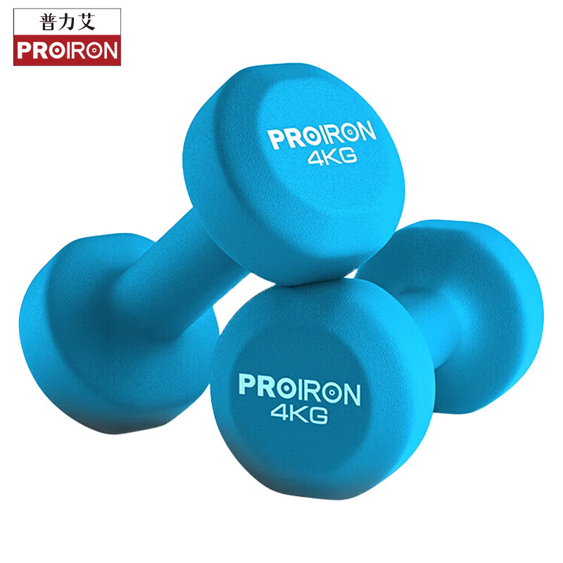 PROIRON普力艾 浸塑哑铃男女士家用哑铃健身哑铃套装亚铃 湖蓝色 4kg*2价格:132.00元!