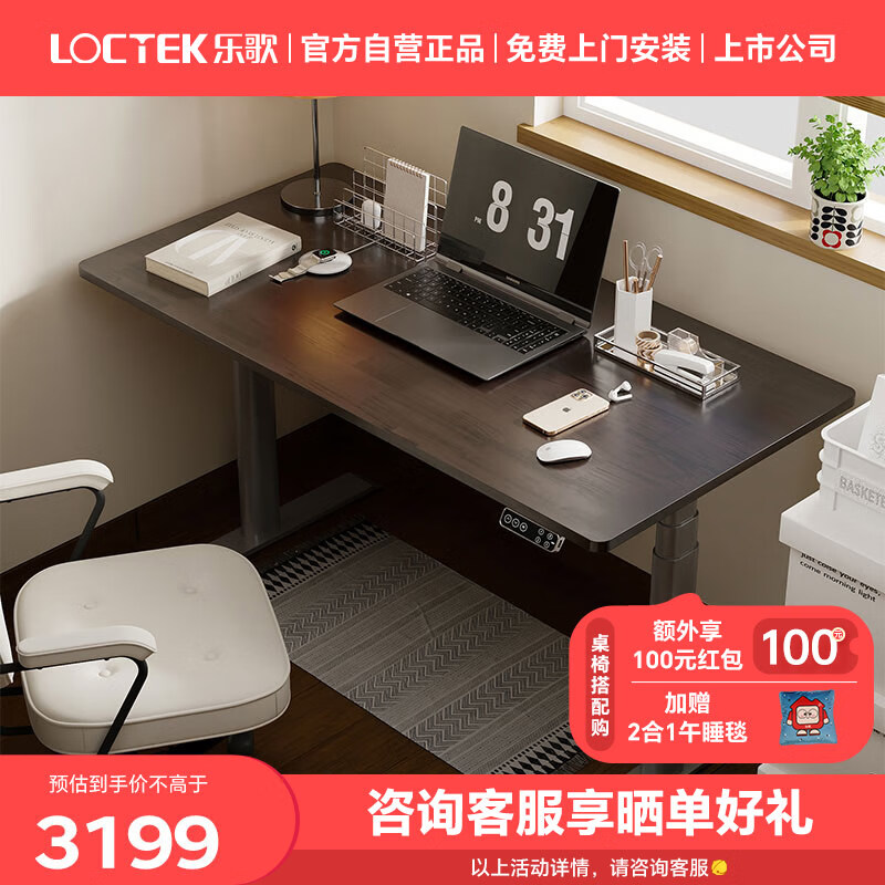 乐歌电动升降桌电脑桌站立办公学习桌 E6/1.6m 实木黑胡桃木色套装价格:3529.00元!