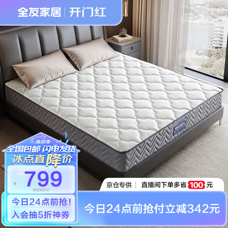 全友家居 环保椰棕偏硬弹簧床垫1.5x2米双人护脊席梦思床垫子105190价格:1141.43元!