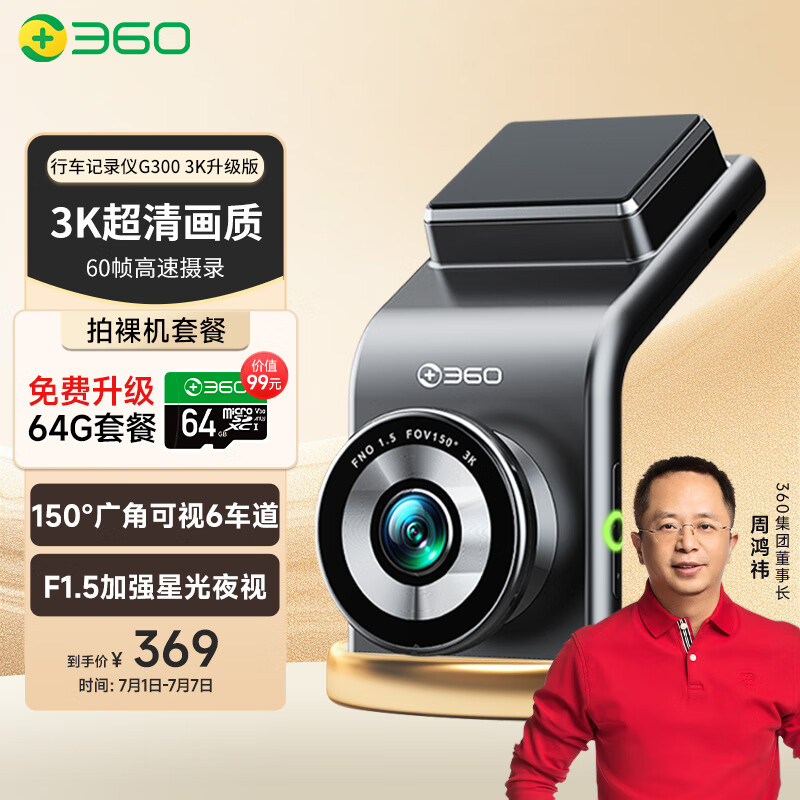 360AI行车记录仪 G300 3K升级版 3K超高清星光夜视 车载语音控制录像价格:369.00元!