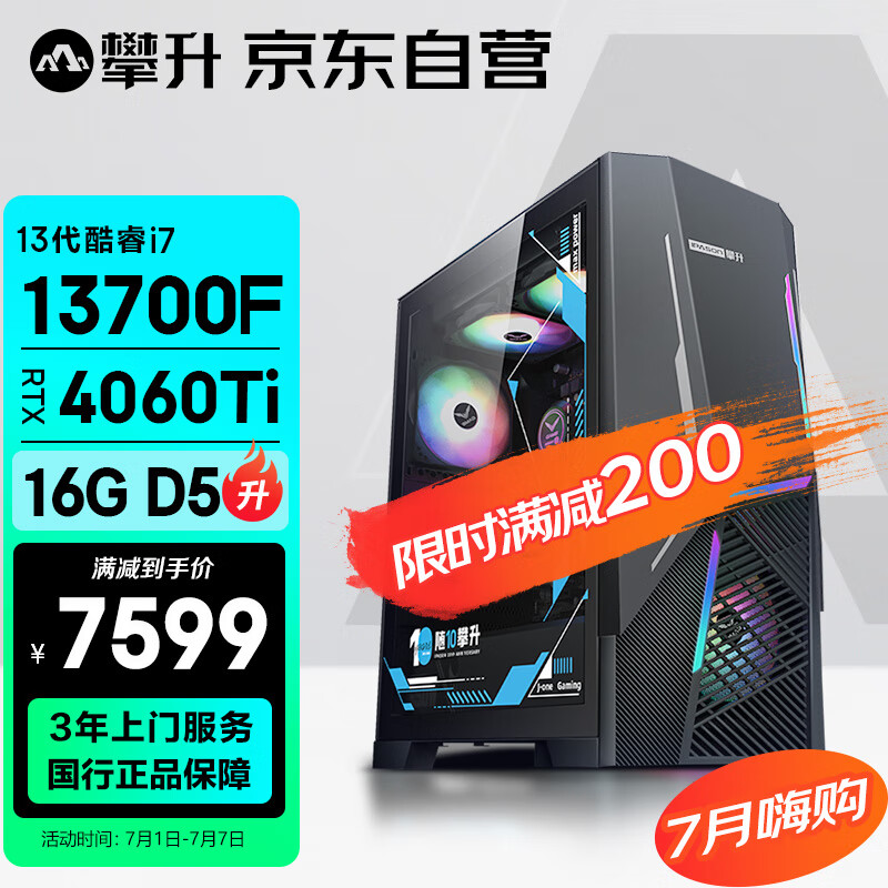 攀升 战神X 台式电脑游戏台式机电脑主机组装电脑主流游戏全套(13代酷睿i7 RTX4060TI 1TB 16GD5)价格:7799.00元!