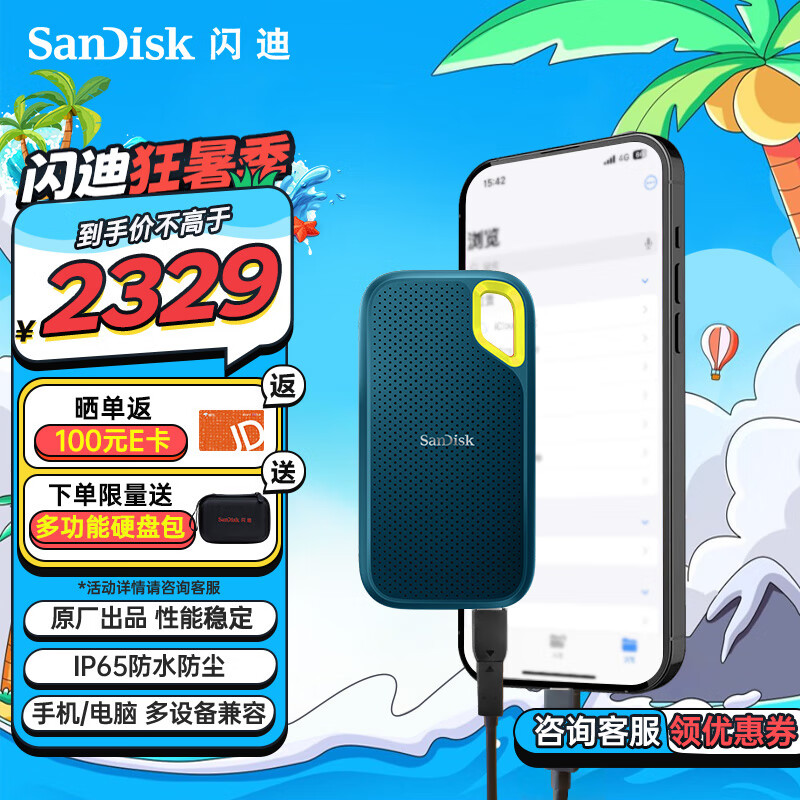 闪迪(SanDisk)4TB Nvme移动固态硬盘(PSSD)E61极速版松柏青SSD 读速1050MB/s 手机直连笔记本外接硬盘价格:2329.00元!