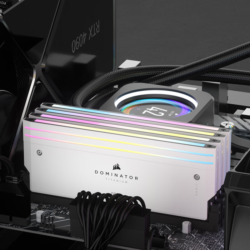美商海盗船 (USCORSAIR) 96GB(48Gx2)套装 DDR5 6600 台式机内存条 统治者泰坦 RGB灯条 白色 C32价格:3999.00元!