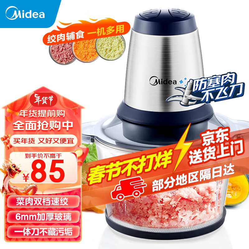 美的(Midea)绞肉机家用电动婴儿宝宝辅食机料理机碎肉机绞肉馅机台式搅拌机智能LZ25Easy225价格:85.00元!