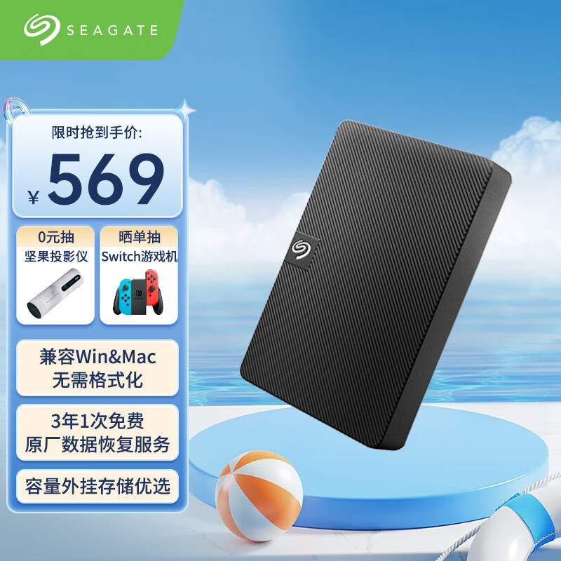 希捷(SEAGATE)移动硬盘 2TB USB3.0高速 希捷睿翼 2.5英寸 机械硬盘 便携 黑 兼容mac 外接存储 数据恢复服务价格:569.00元!