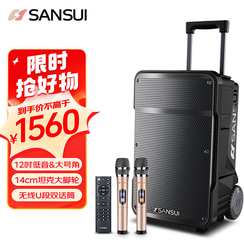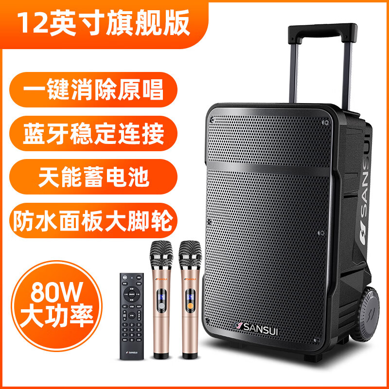山水(SANSUI)12英寸大功率重低音广场舞音响 便携移动户外蓝牙拉杆音箱 多媒体会议扩音器带麦克风 A12价格:1710.00元!