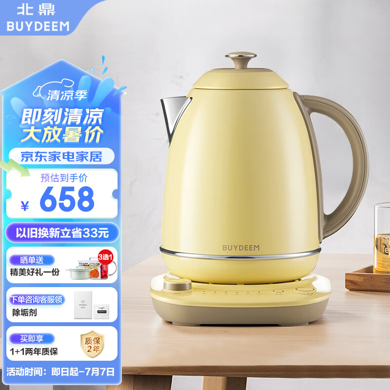 北鼎 Buydeem 炫彩304不锈钢调温电水壶 K740C小鹅黄价格:658.00元!