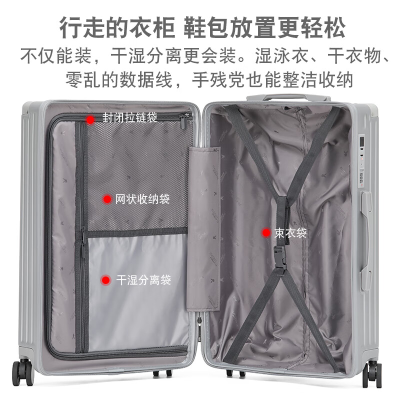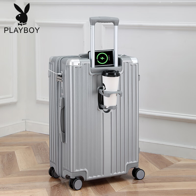 花花公子行李箱女男款拉杆箱万向轮旅行箱密码箱24英寸银色价格:278.00元!