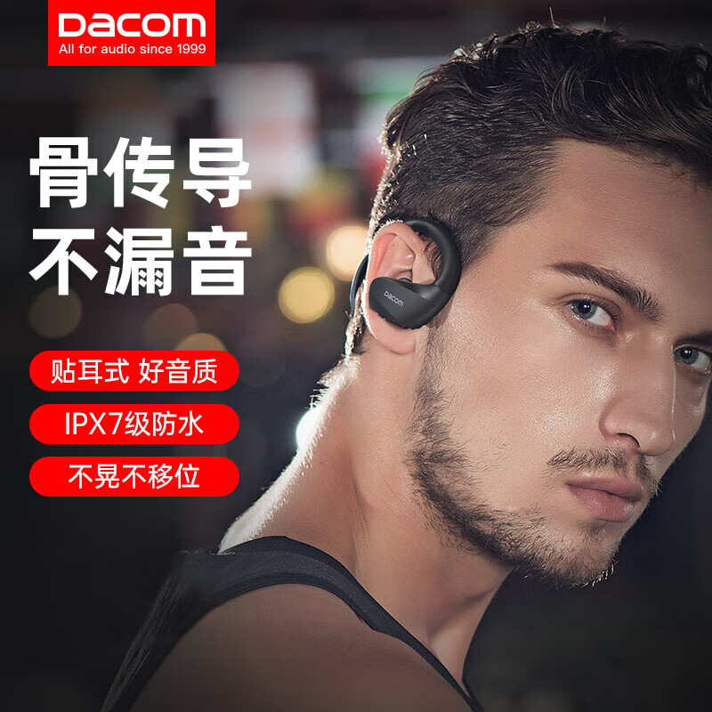 dacom E60骨传导运动蓝牙耳机无线耳机挂耳式跑步骑行不入耳防水降噪耳机长续航适用安卓华为苹果 黑色价格:99.00元!