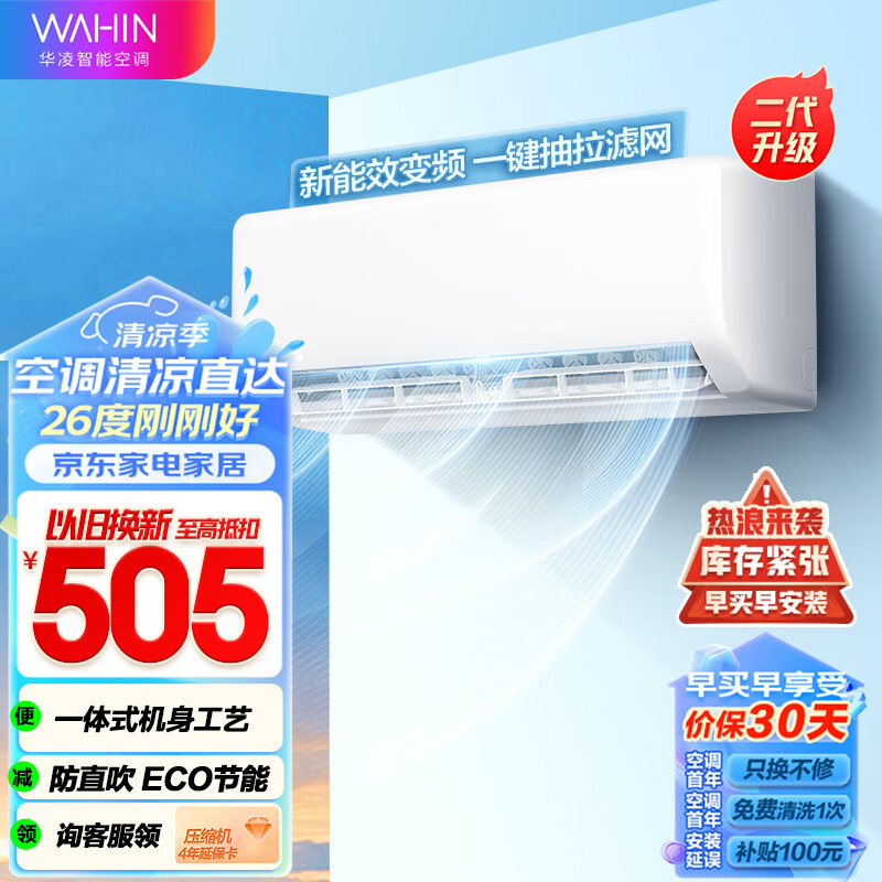 华凌空调 新能效 变频冷暖 智清洁 1匹 小冰棒 挂式空调挂机 升级二代 以旧换新 KFR-26GW/N8HA3Ⅱ价格:1899.00元!