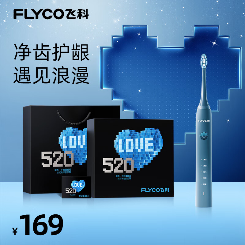 飞科(FLYCO)成人电动牙刷情侣送男友情人节礼物充电防水深度清洁智能声波软毛牙刷FT7105深海蓝-表白限定礼盒价格:169.00元!