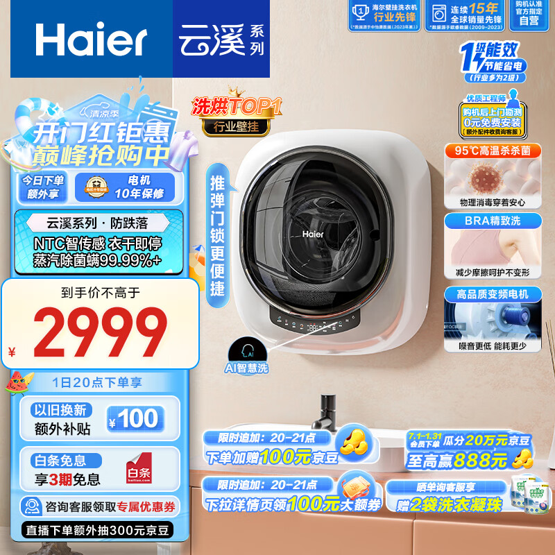 海尔(Haier)壁挂洗衣机 云溪715 洗衣机小型 内衣婴儿洗衣机 洗烘一体3KG 蒸汽除菌 以旧换新 一级能效HB715U1价格:2999.00元!
