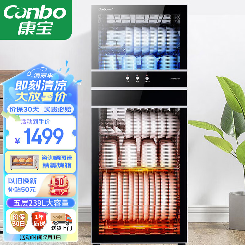 康宝(Canbo)消毒柜 家用 立式消毒碗柜大容量 商用碗筷收纳柜餐具茶杯柜双门碗柜XDZ239-D1(ZTP350D-1)价格:1499.00元!