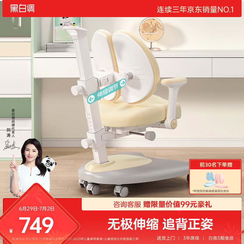 黑白调学习时光G5儿童学习椅学生座椅子矫姿写字椅升降久坐舒服儿童学习餐桌椅木价格:1099.00元!