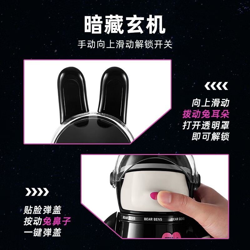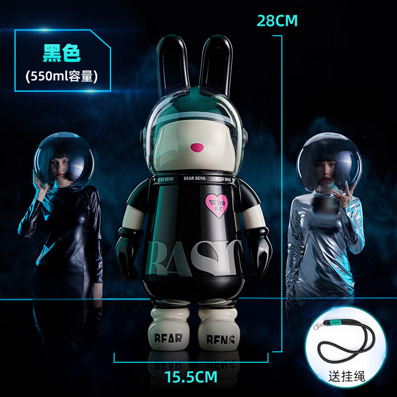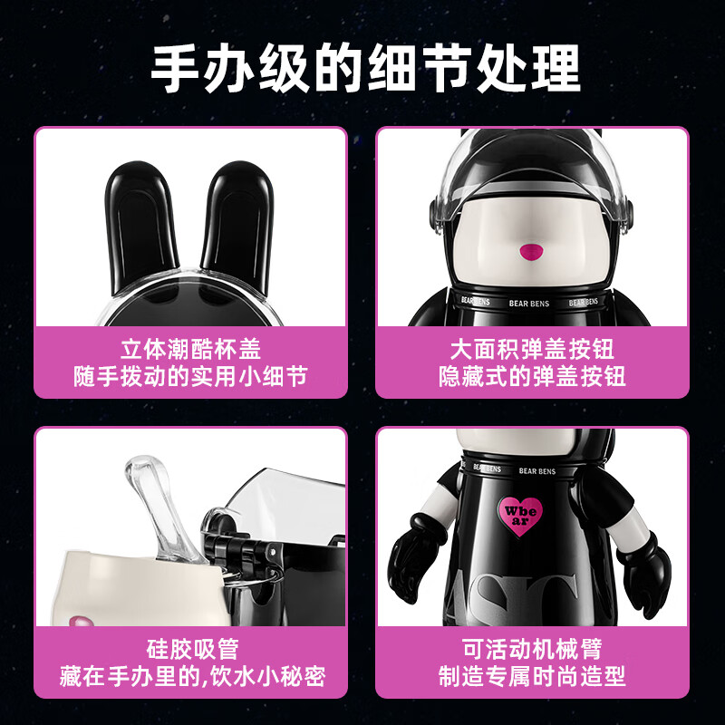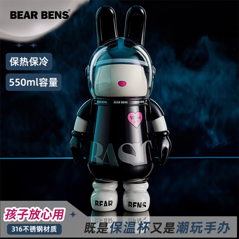 BEARBENS熊本士保温杯女士儿童水杯高颜值吸管杯子男太空月球兔 550mL黑色价格:119.00元!