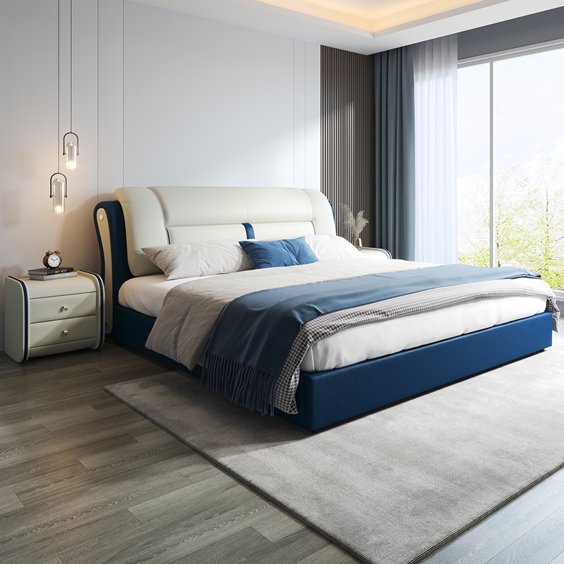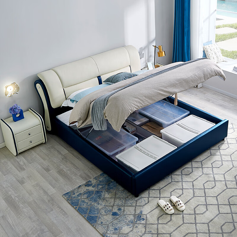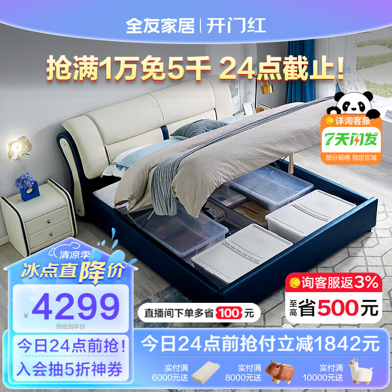 全友家居 真皮床1.8米现代简约头层牛皮高箱储物主卧室双人大床105125价格:6141.43元!