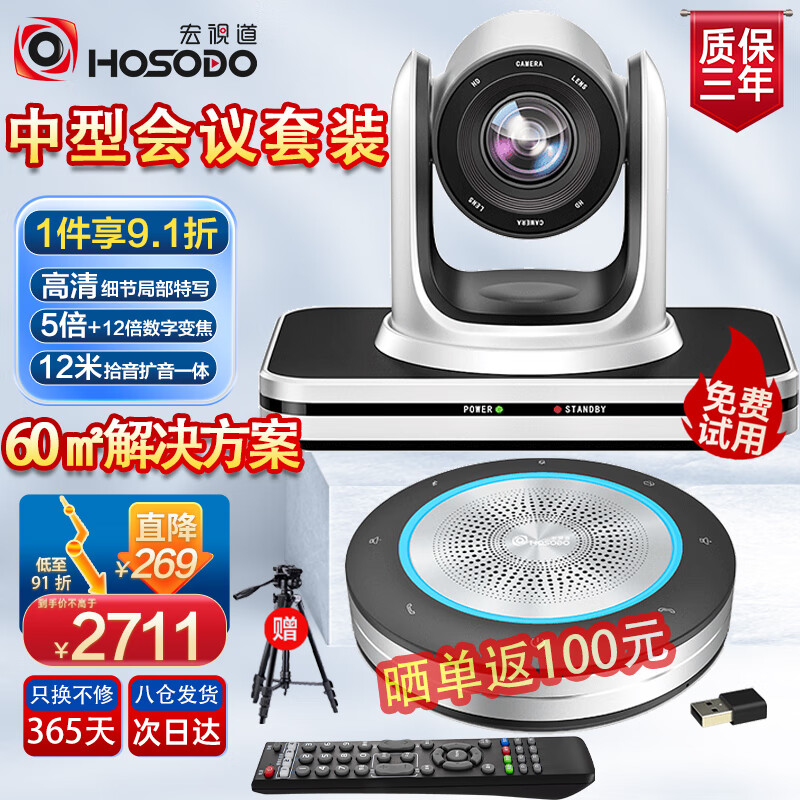 宏视道中型视频会议解决方案适用20-60平米/高清视频会议摄像头/摄像机/无线2.4G全向麦克风/终端系统TZ3价格:2980.00元!