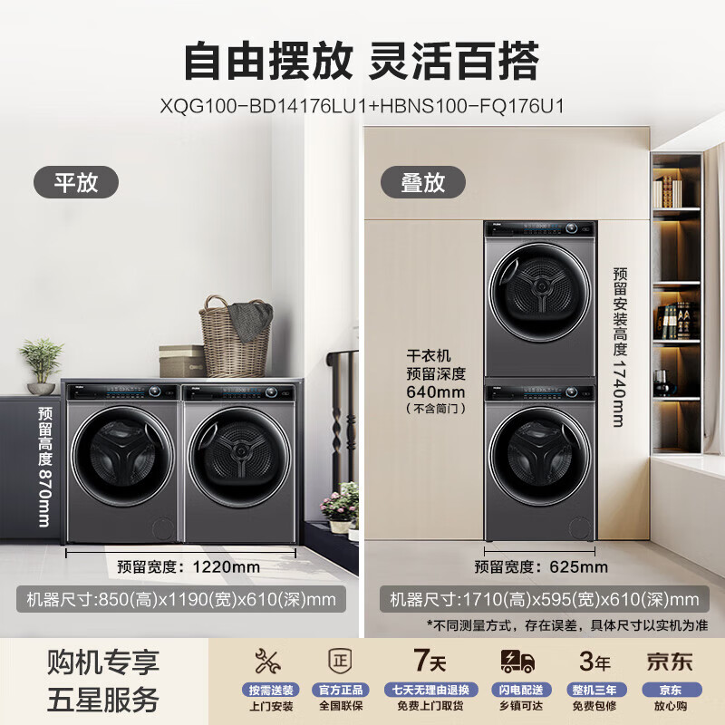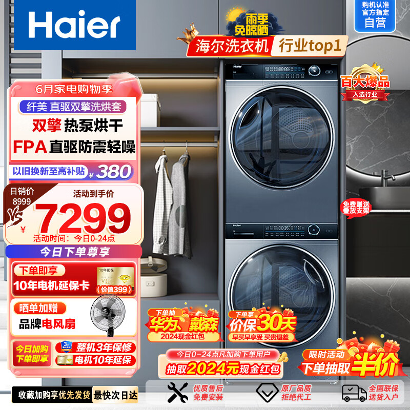 海尔(Haier)纤美双擎热泵10Kg洗烘套装 全自动洗衣机烘干机 超薄直驱变频 智能投放正反转176洗烘套以旧换新价格:7299.00元!