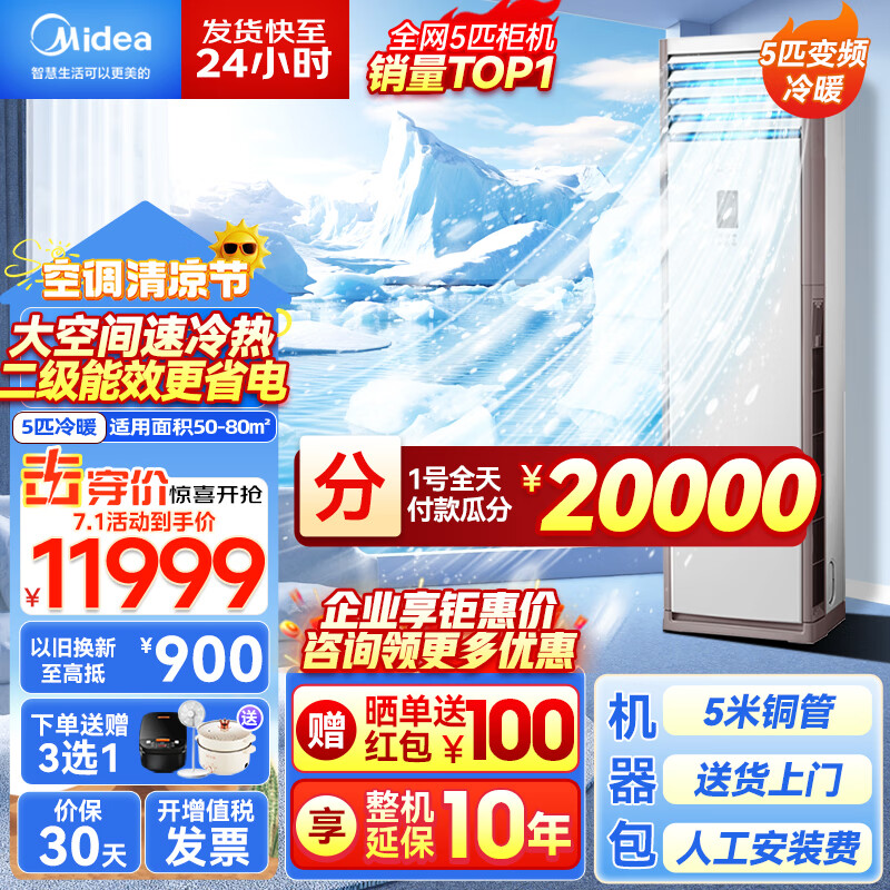 美的(Midea)5匹柜式空调商用柜机中央空调冷暖变频 新二级能效 380V包5米铜管 KFR-120LW/BSDN8Y-PA401(2)A价格:11999.00元!