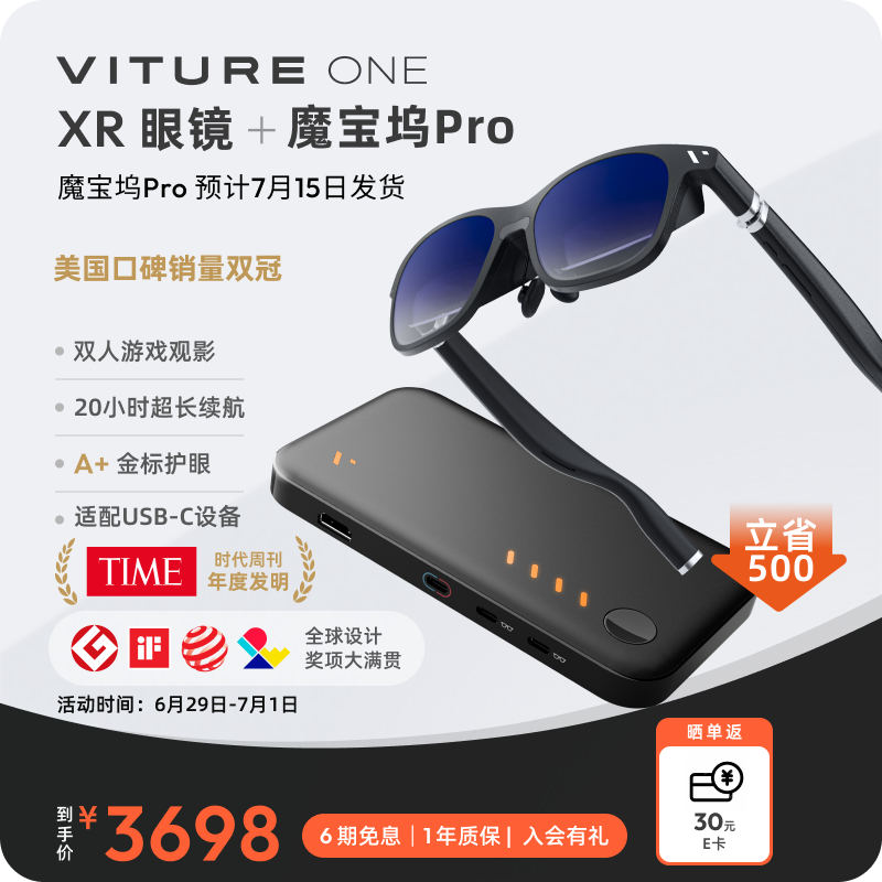 VITURE One AR眼镜套装版(魔宝坞Pro+眼镜) Switch专属伴侣 双人游戏观影 电致变色 适配主流AR眼镜价格:3898.00元!