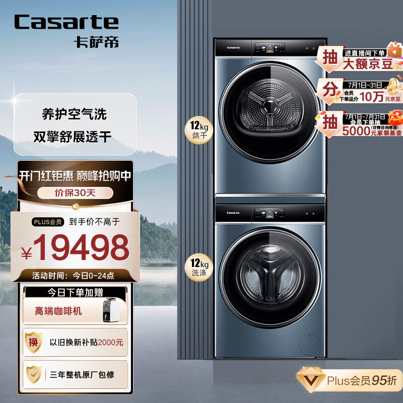 卡萨帝(Casarte)纤诺和美洗烘套装纤诺5月光宝盒12公斤滚筒洗衣机+家用热泵烘干机 平嵌D12L5LU1+12FL5TU1价格:22998.00元!
