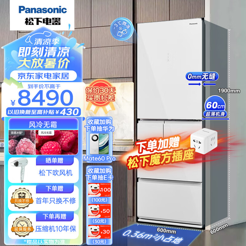 松下(Panasonic)387升嵌入式多门冰箱超薄60cm 黑科技纳诺怡 智能WIFI 自动制冰电冰箱优选NR-EE40TXB-W 白色价格:8490.00元!
