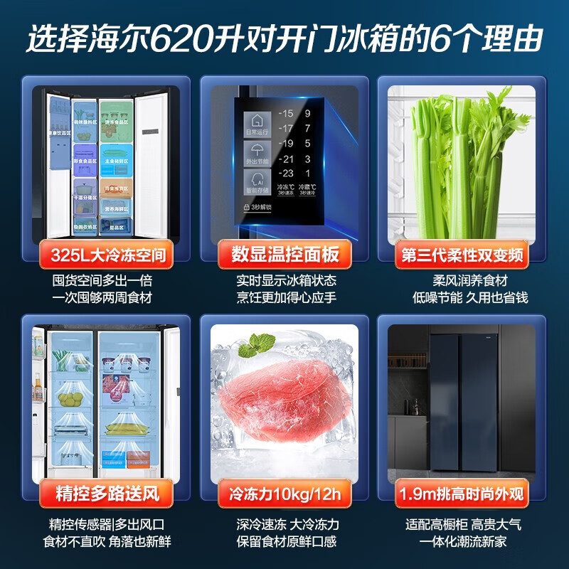 海尔(Haier)620升大容量对开门冰箱 风冷无霜新一级双变频 325L大冷冻空间双开门冰箱 黑金净味保鲜以旧换新价格:4699.00元!