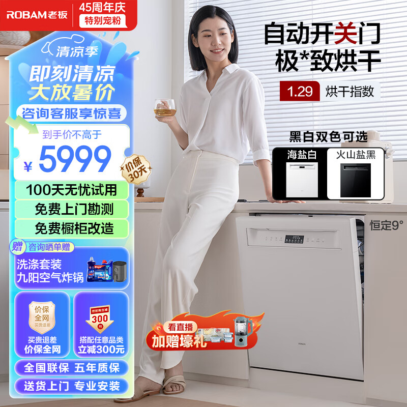 老板(Robam)盐系G1海盐白17+1套三层嵌入式洗碗机自动开关门独立热风烘干独立紫外消毒家用洗碗机免费橱改价格:5999.00元!