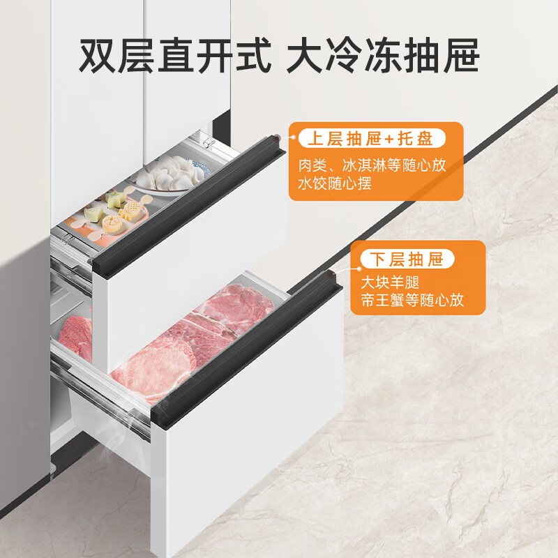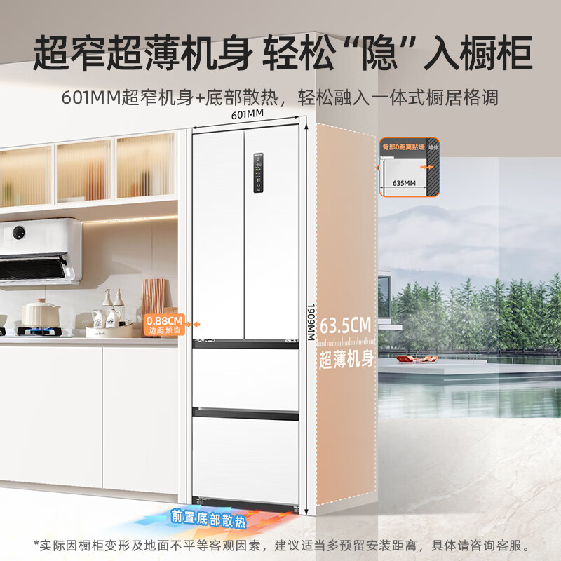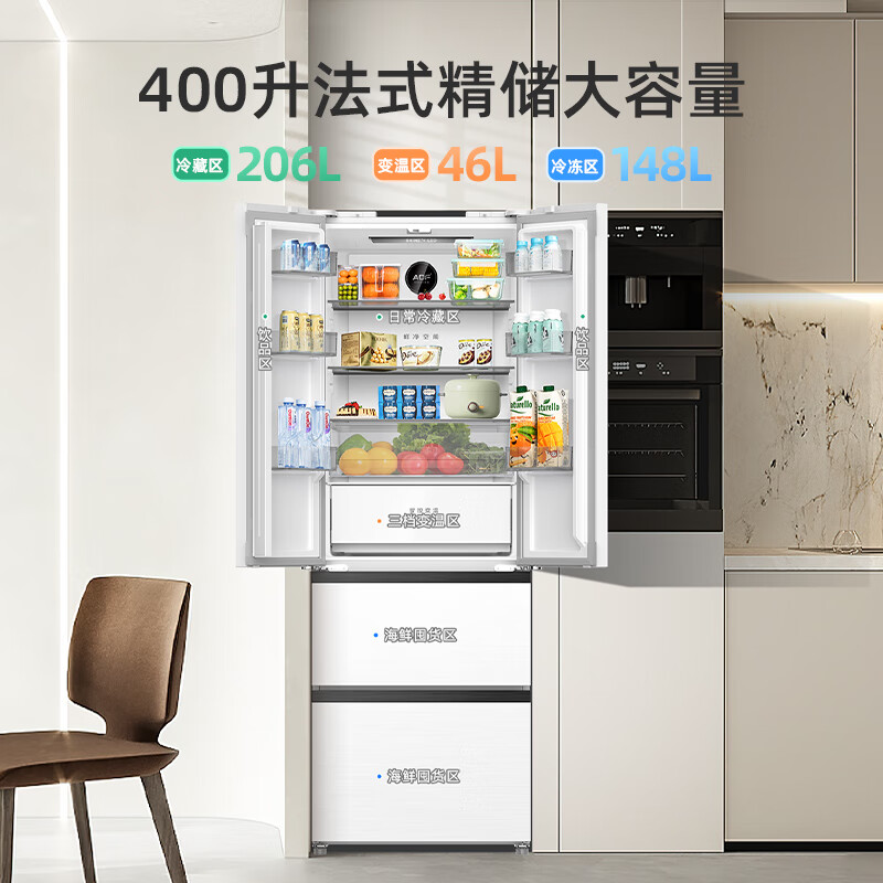 美菱(MeiLing)冰箱400升法式双开门冰箱对开门家用一级能效零嵌入式超薄601mm窄箱体风冷无霜底部散热四门电冰箱 【新款Pro版】BCD-400WPU9CZX-白价格:3299.00元!