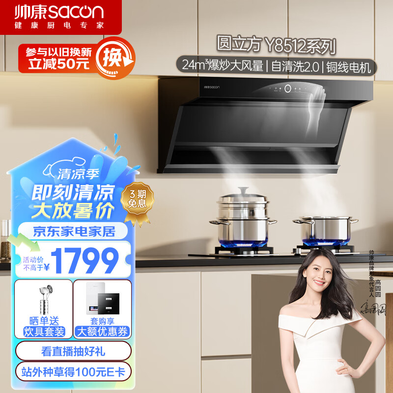 帅康(Sacon)抽吸油烟机 家用顶侧双吸24风量大吸力自动清洗挥手智控排油烟机 CXW-280-Y8512价格:1799.00元!